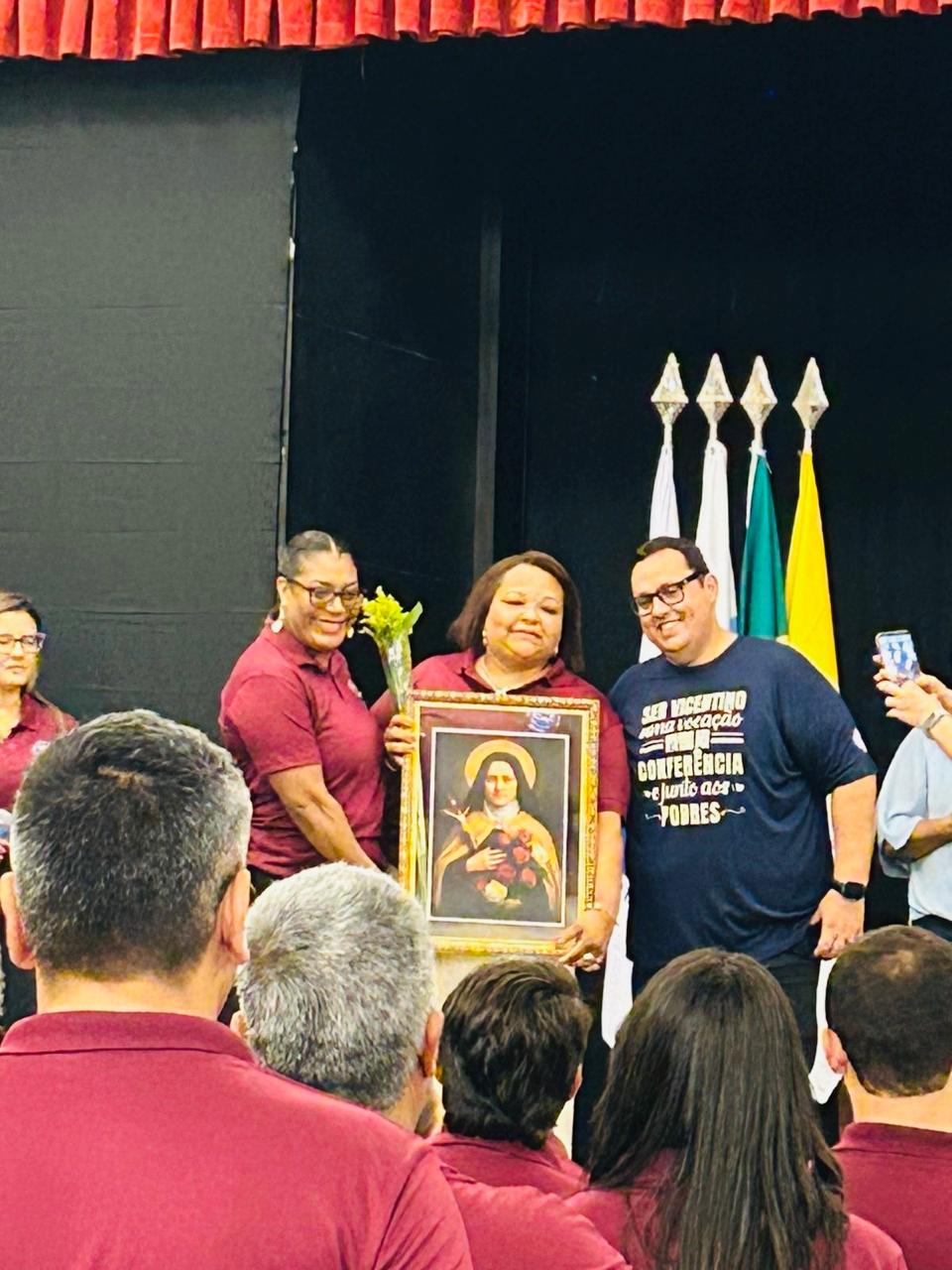 Padre Allan e a irmã Carolina Mureb foram os palestrantes, enfatizando a necessidade de servir com amor e comprometimento. A Presidente Bete reforçou a importância da unidade e trabalho em equipe, afirmando que “ninguém faz nada sozinho” e que o desafio de um é de todos.